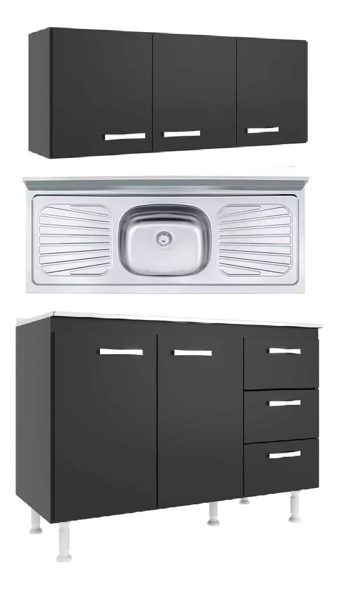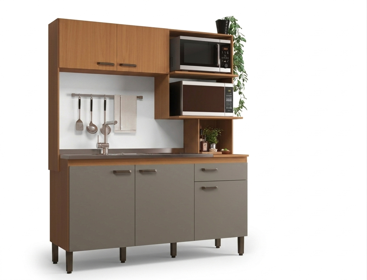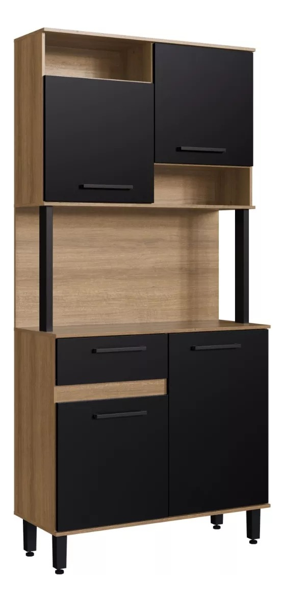 Mueble Aereo De Cocina Alacena Superior 2 Puertas Estantes – Grafite/Pino