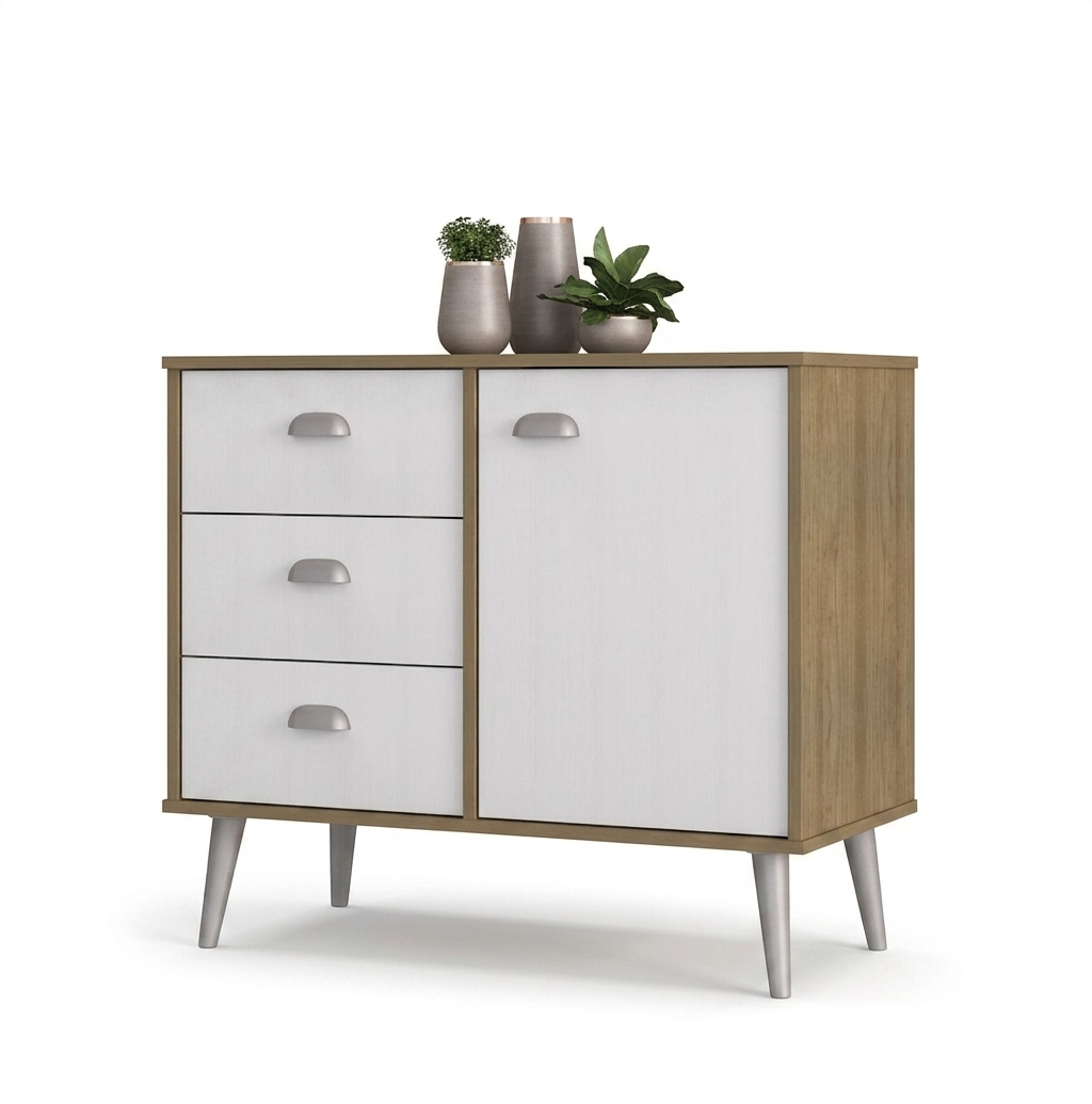 Comoda Cajonera Con Patas 3 Cajones 1 Puerta – Dormitorio