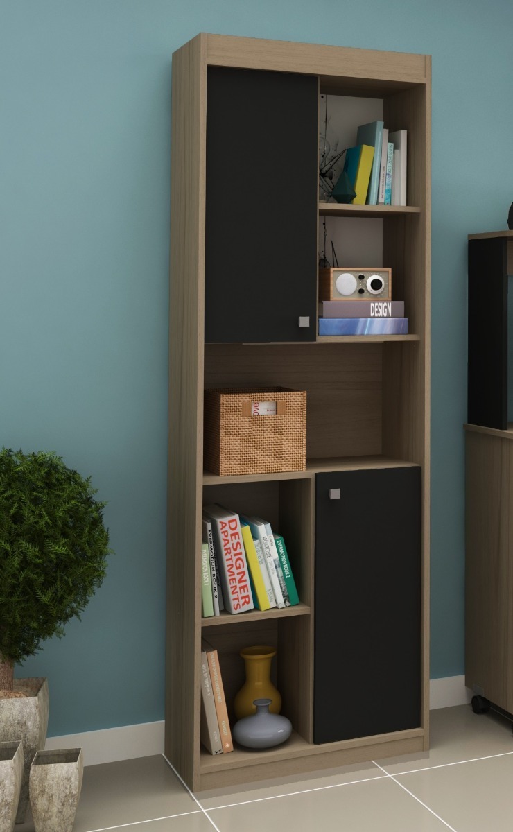 Biblioteca Con Puerta – Estanteria – Oficina Living Estudio – Negro-Nogueira