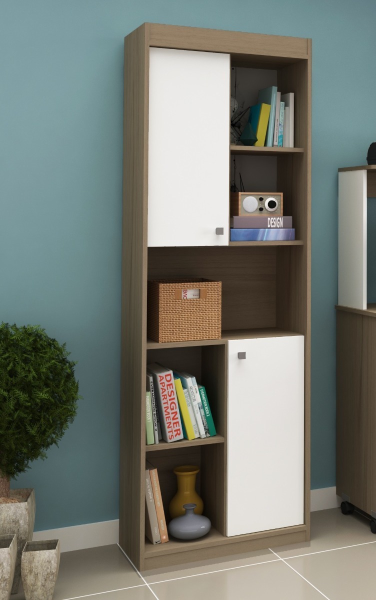 Biblioteca Con Puerta – Estanteria – Oficina Living Estudio – Blanco-Nogueira