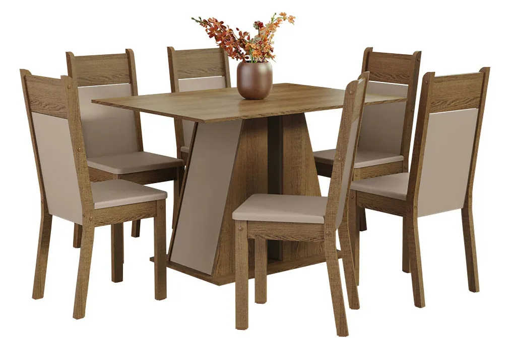 Juego De Living Elegante Comedor 6 Sillas Madera Tapizado
