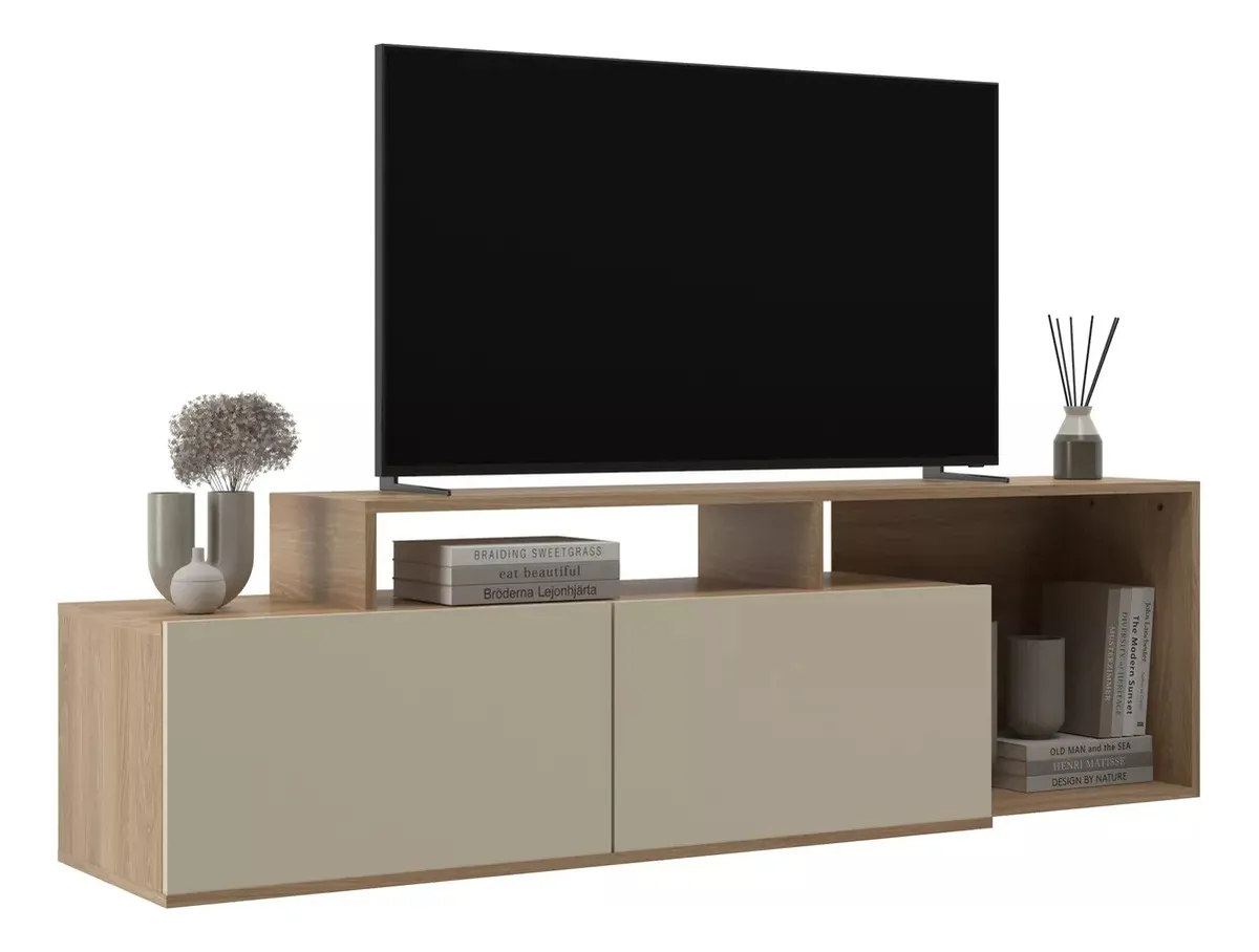 Rack Para Tv Lcd Led Televisor 2 Puertas 2 Estantes Living – Blanco/Miel