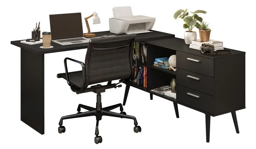 Escritorio – Mesa De Pc Esquinero O Recto – Oficina – Mweb – Avena/Negro