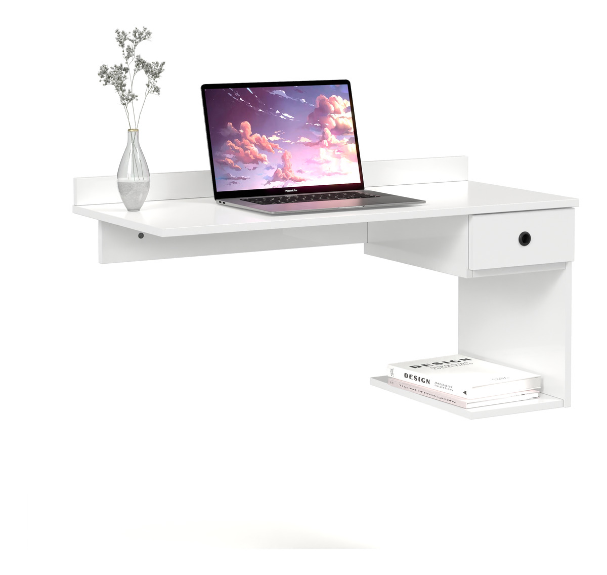 Escritorio Suspendido Mesa Para Colgar Con Estante Y Cajon – Blanco