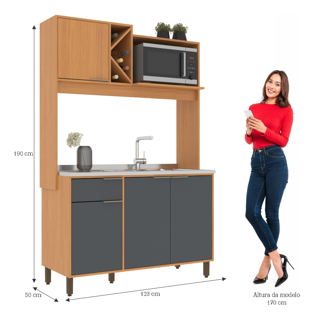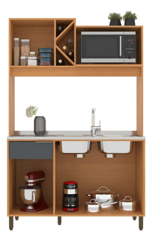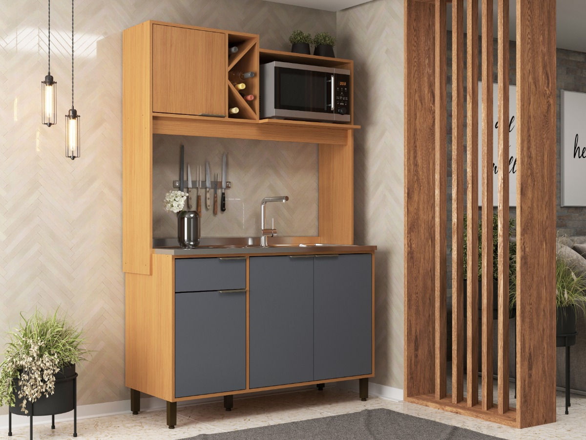 Mueble Aereo De Cocina Alacena Superior 2 Puertas Estantes – Grafite/Pino