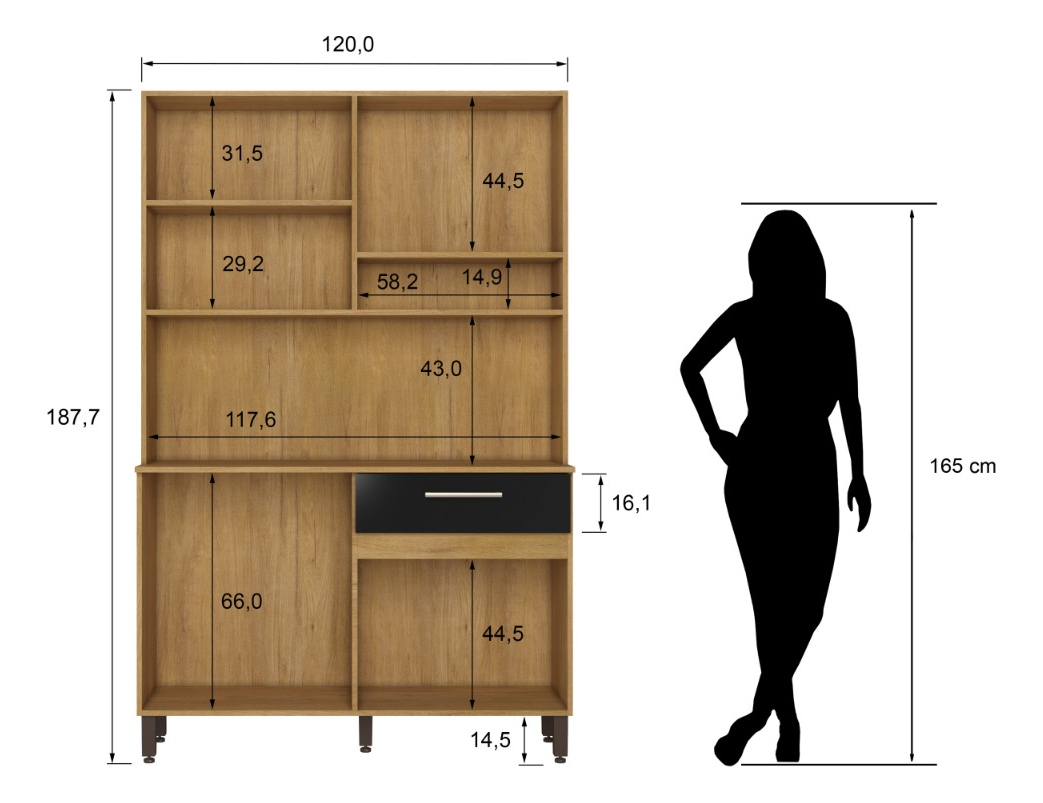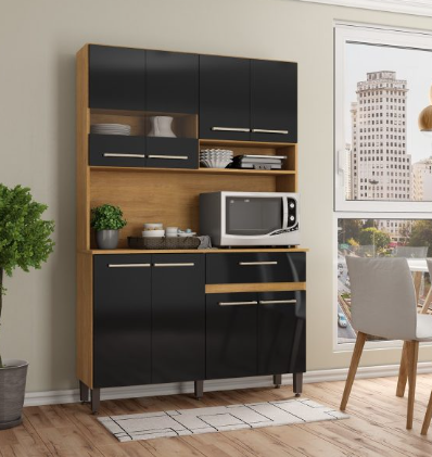 Armario Mueble Cocina Kit 8 Puertas 1 Cajón Alacena – Negro/Miel