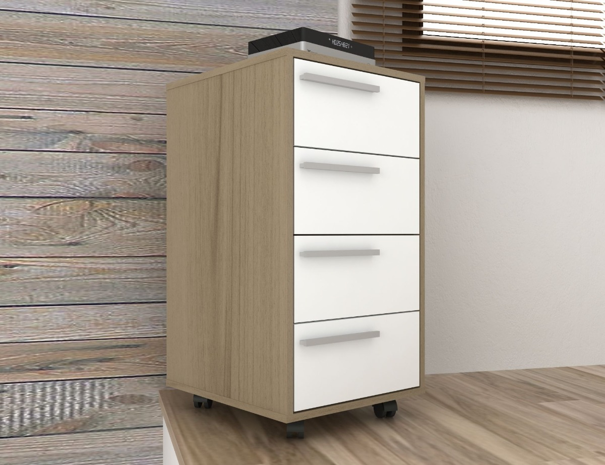 Cajonera Con Ruedas Mesa De Luz Bajo Escritorio 4 Cajones – Avena/Blanco