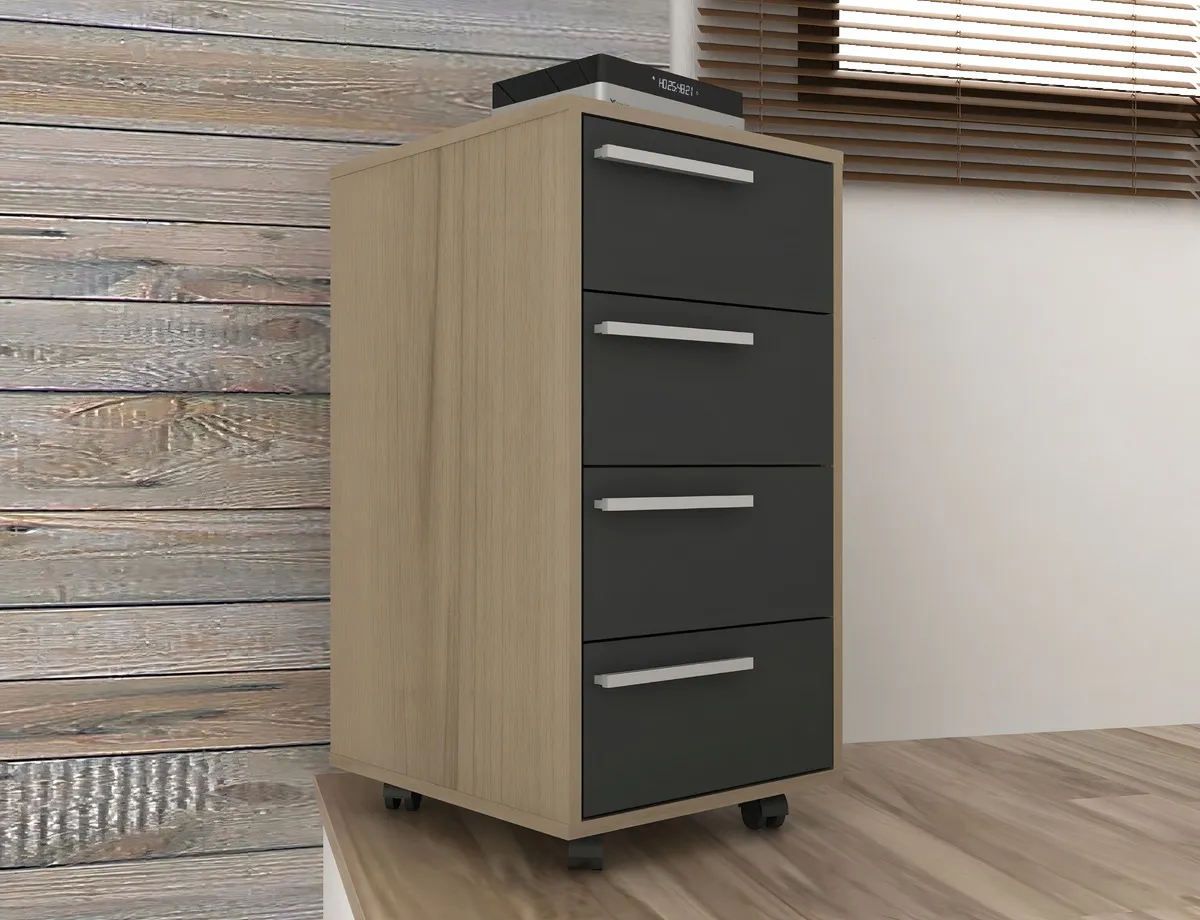 Cajonera Con Ruedas Mesa De Luz Bajo Escritorio 4 Cajones – Avena/Negro