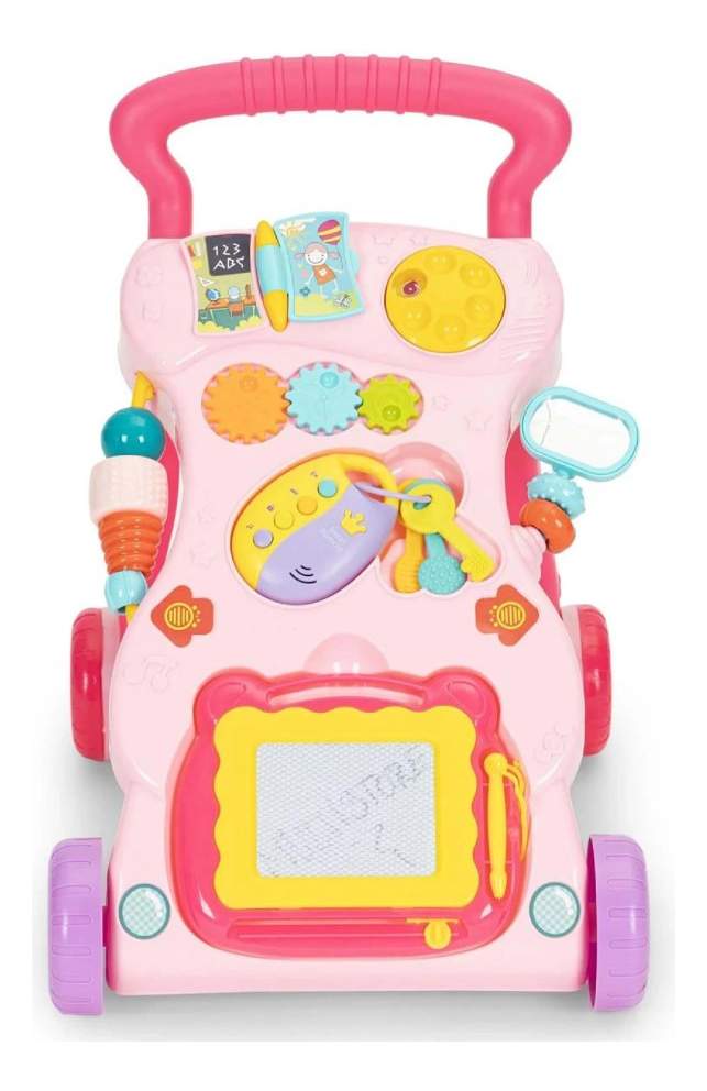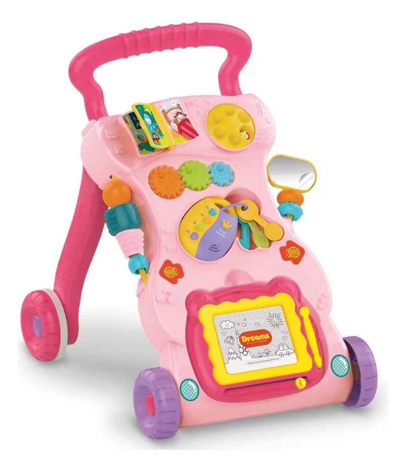 Este lindo Caminador tiene ruedas siliconadas para que pueda deslizarse con seguridad. También tiene muchos juguetes para explorar y disfrutar. Tablero de dibujo, llaves, disco de teléfono, engranajes, espejo, etc.