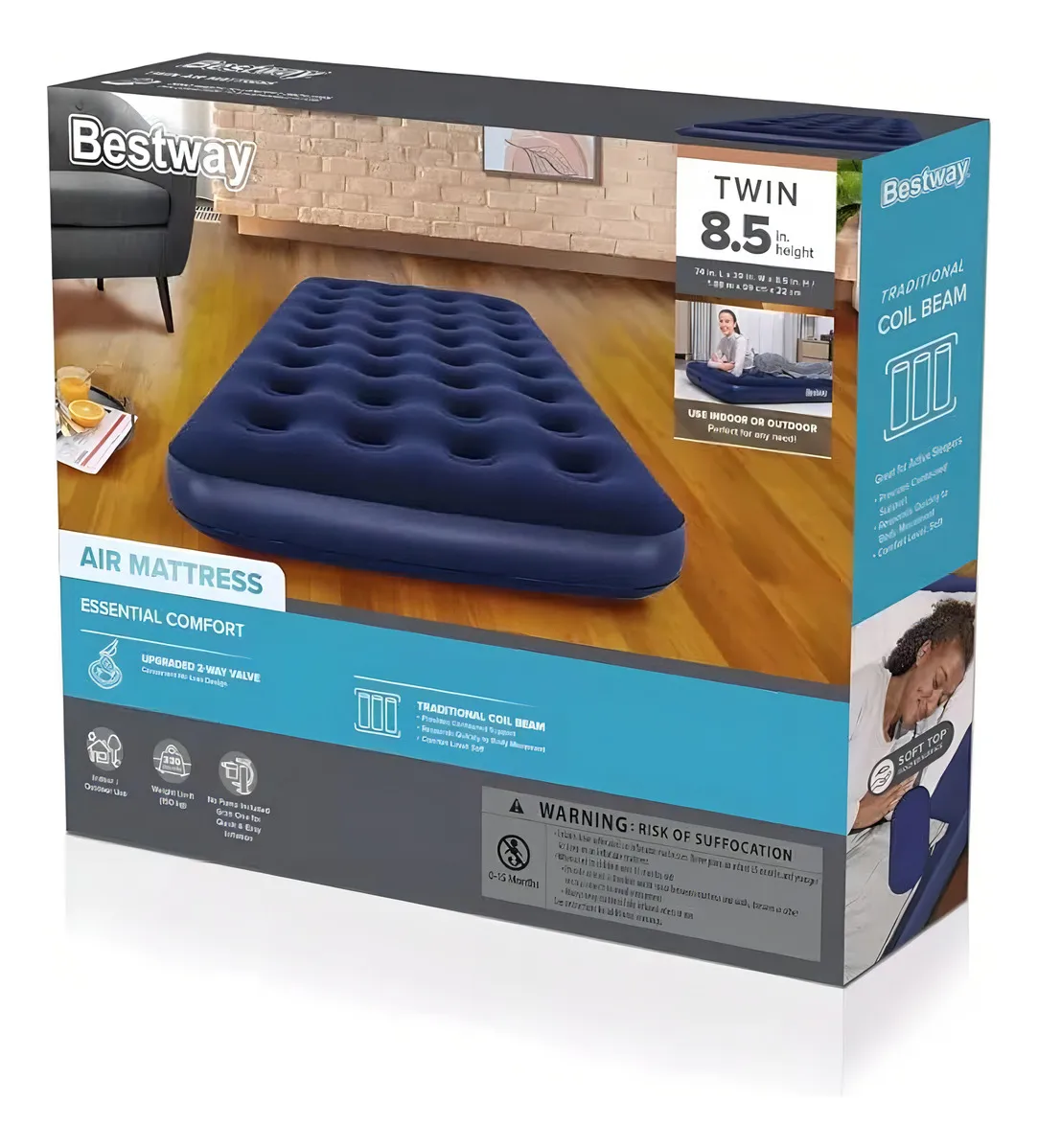 Fabricado por Bestway, este colchón es perfecto para camping, viajes o visitas inesperadas.