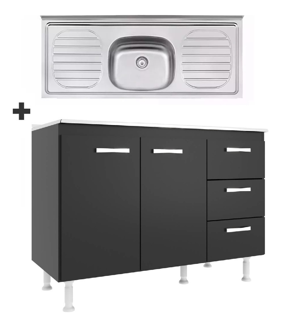 BAJO MESADA DE 2 PUERTAS CON 3 CAJONES + PILETA DE ACERO – MUEBLES WEB