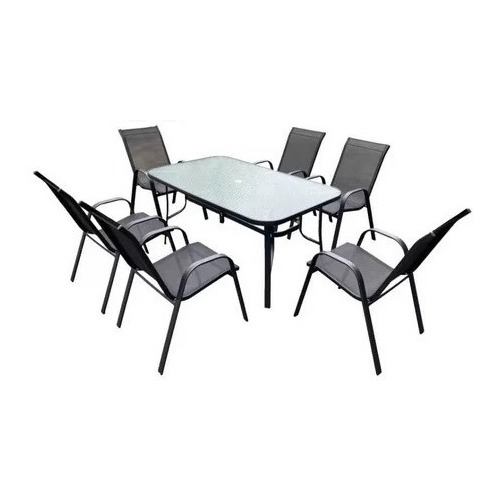 Mesa de Vidrio Rectangular + 6 Sillas de Textilina
