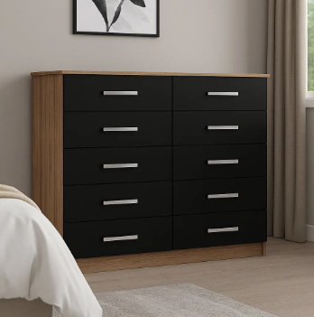 La cómoda cajonera guardarropa dormitorio modelo Marbela de Muebles Web es la solución perfecta para mantener tu espacio organizado y estilizado. Con diez amplios cajones, ofrece un excelente espacio de almacenamiento, ideal para ropa, accesorios o cualquier objeto que necesites guardar de manera ordenada y accesible.