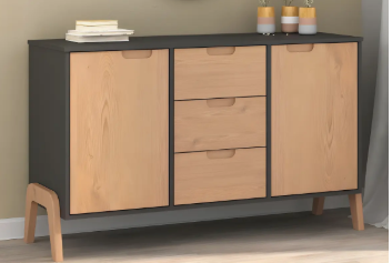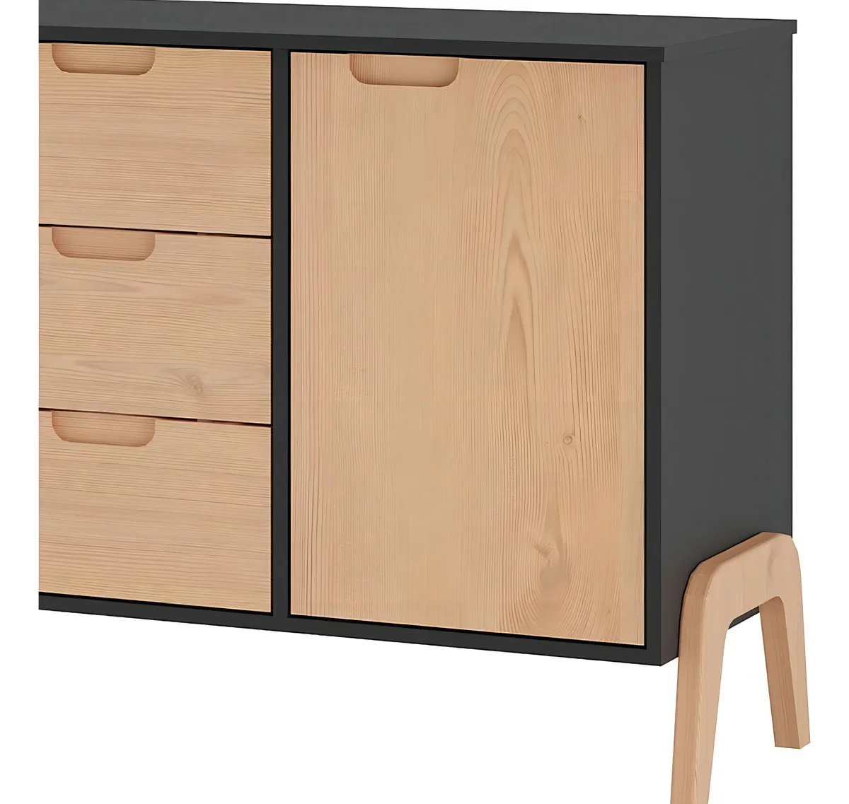 Cómoda con 2 puertas y 3 cajones, color Grafito/Pino