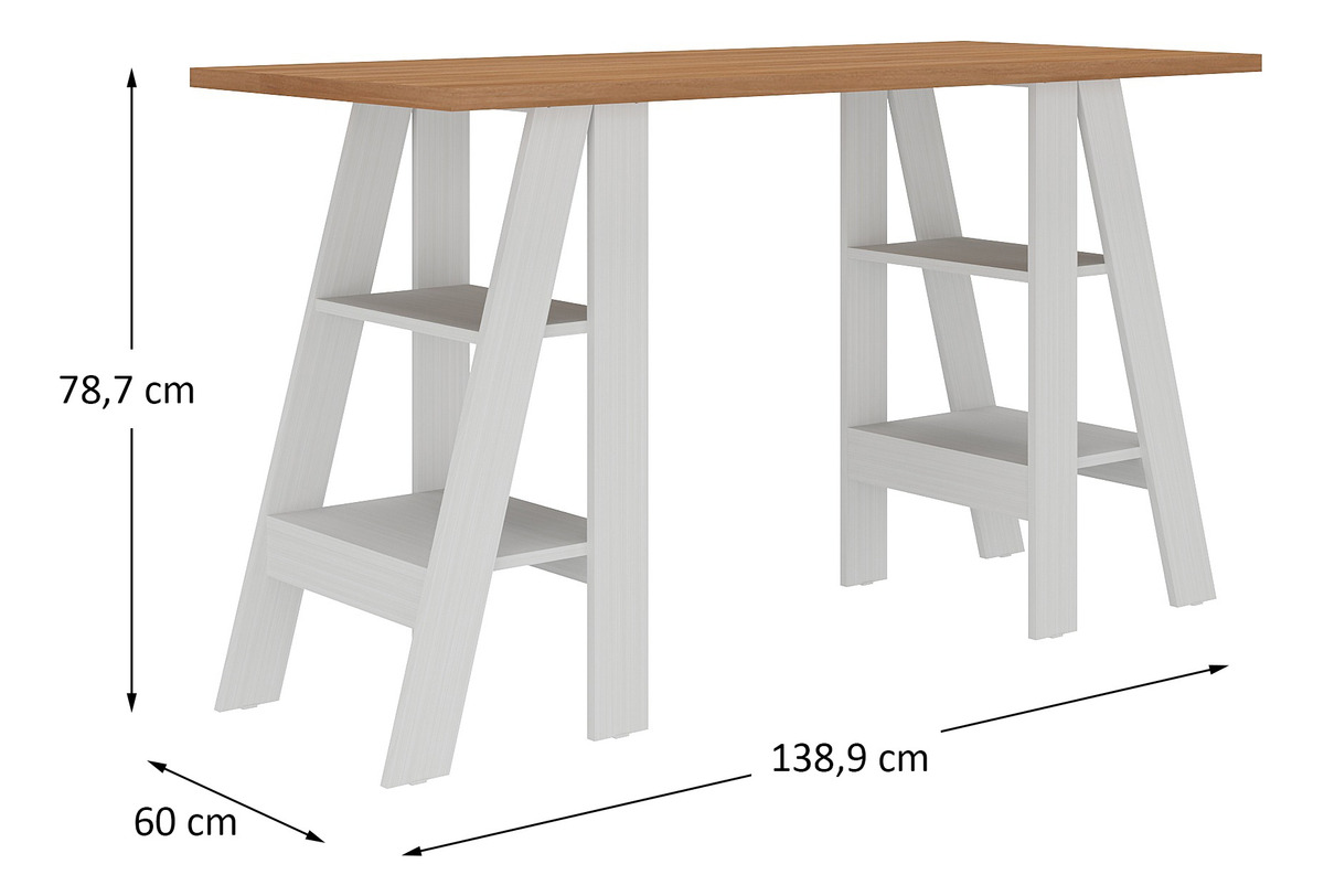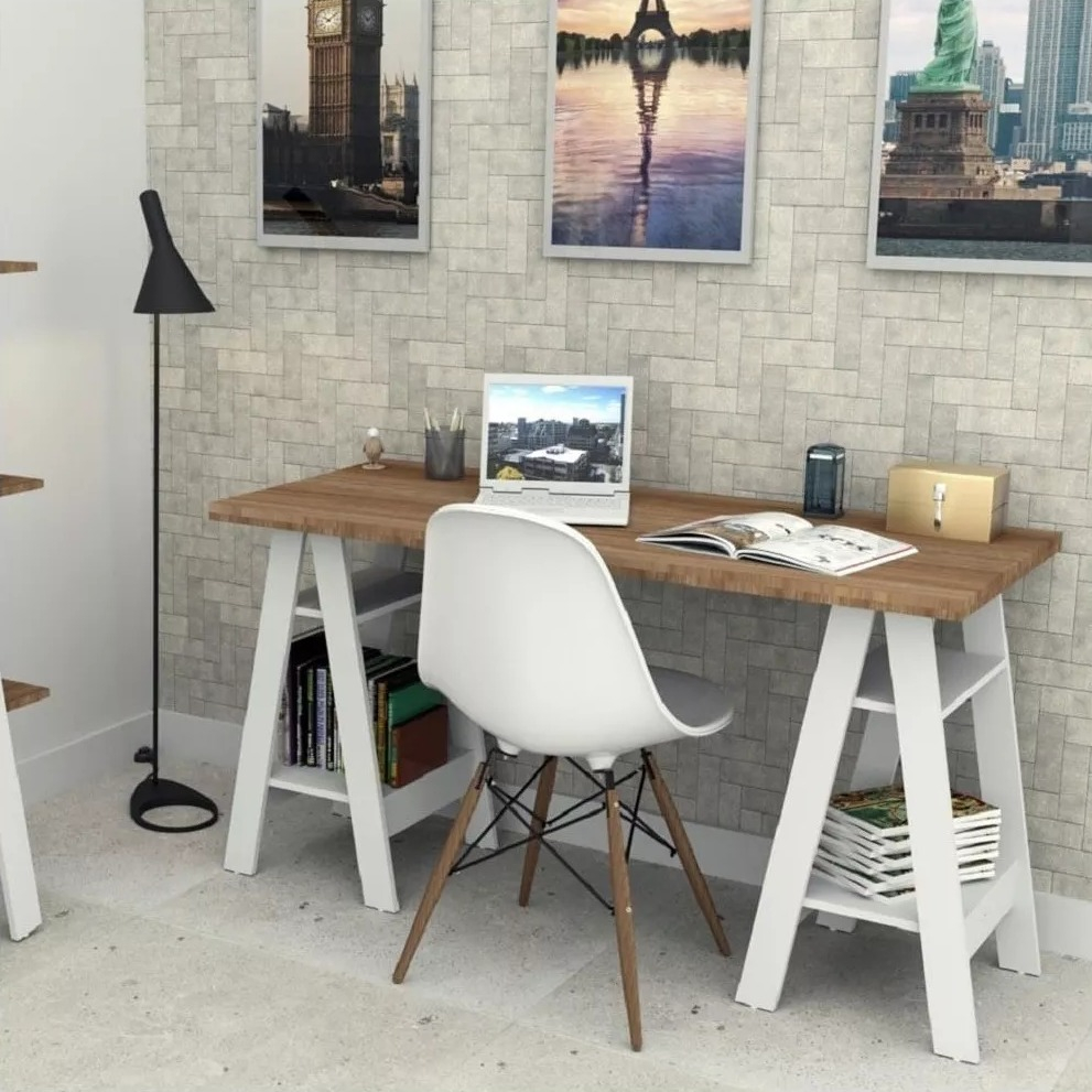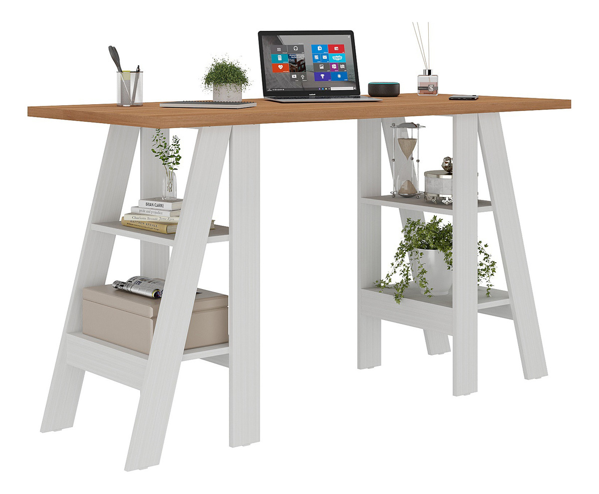 Escritorio Cavalete – Mesa Pc- Mesa Oficina – Mw – Blanco/Nogal