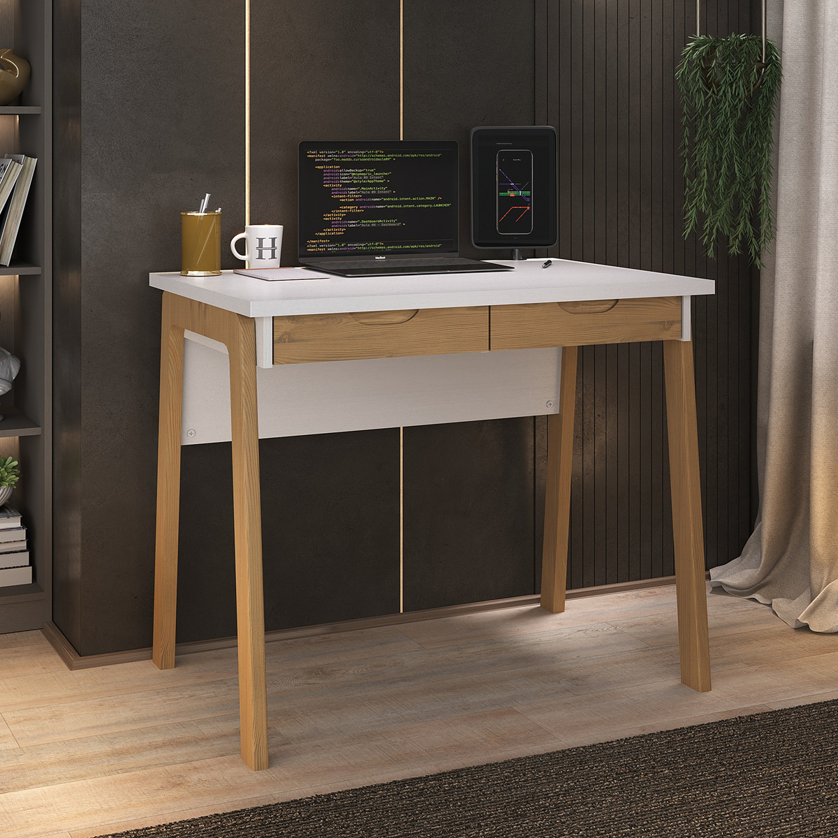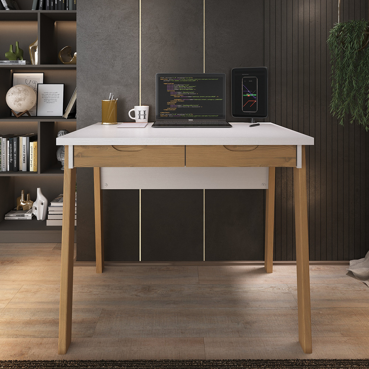 Escritorio Con 2 Cajones Mesa De Pc Laptop Oficina Estudio – Blanco/Miel