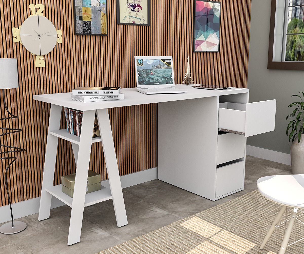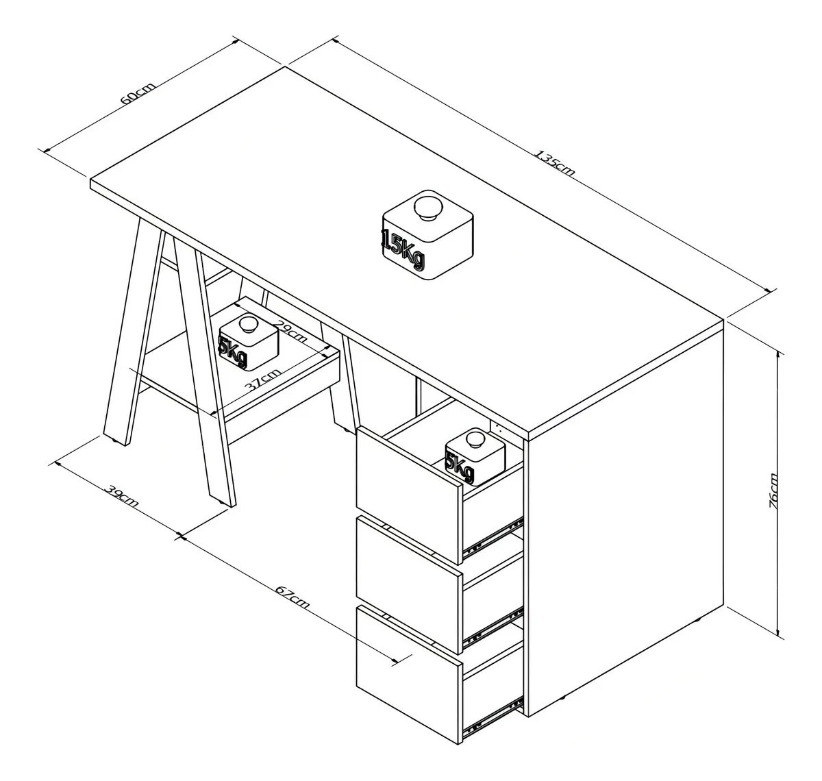 Escritorio Self color Castaño/Negro con 3 cajones y una pequeña biblioteca o estantería, material MDP