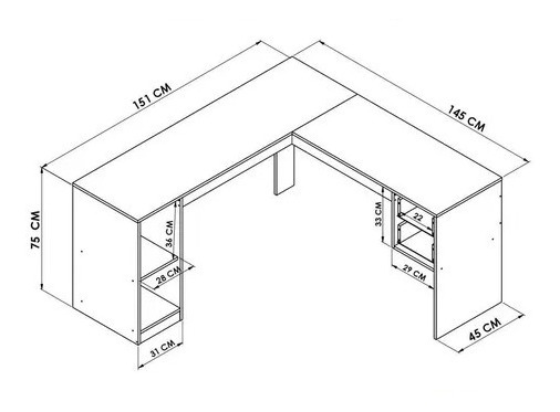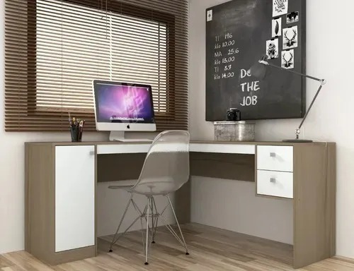 Escritorio esquinero con 1 puerta, 1 estante interno y 2 cajones