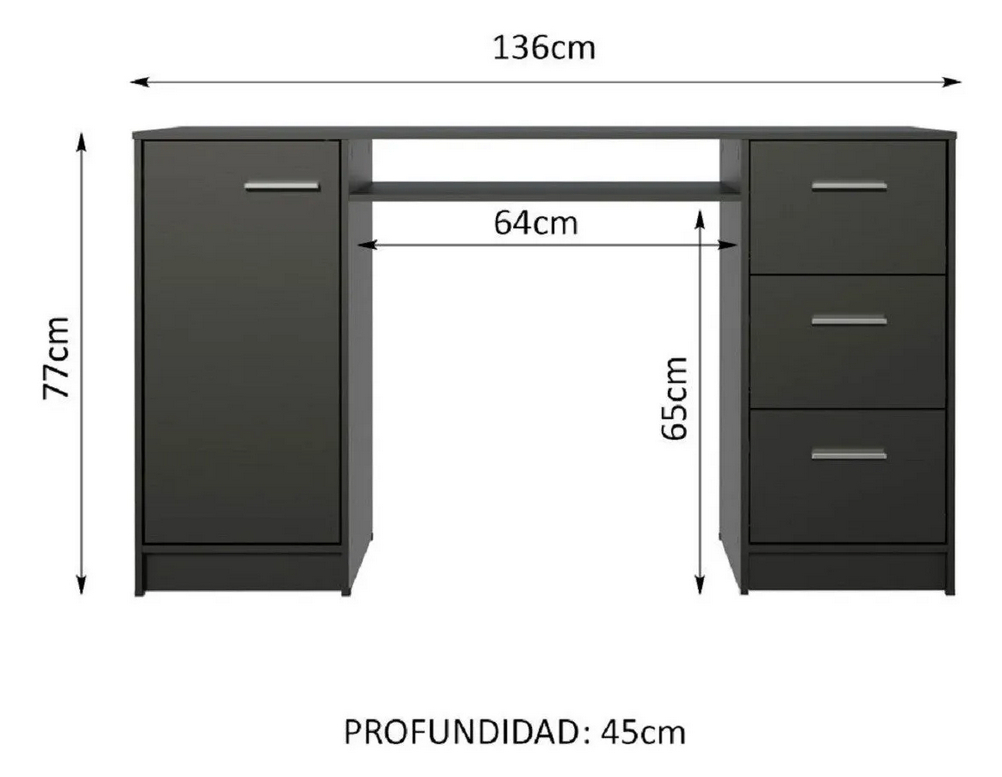 El escritorio Mesa Para PC Oficina – Muebles Web, modelo ALASKA, es la solución ideal para quienes buscan un espacio de trabajo moderno y funcional. Con unas dimensiones de 136 cm de ancho y 45 cm de profundidad, este escritorio se adapta perfectamente a cualquier ambiente, ya sea en casa o en la oficina. Su altura de 77 cm proporciona una ergonomía adecuada para largas jornadas laborales.