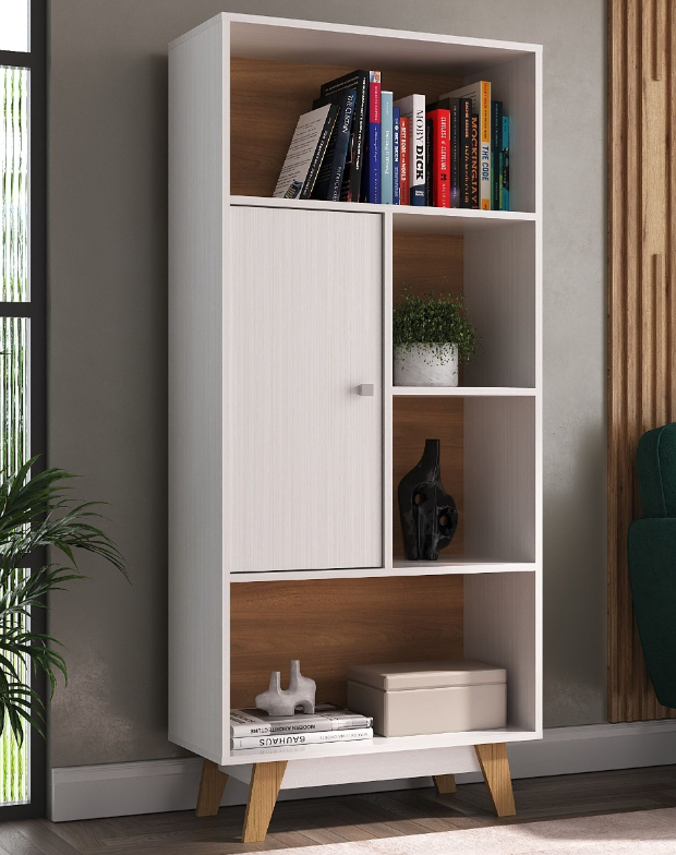 Estanteria Biblioteca 4 Estantes 1 Puerta Mueble Repisa