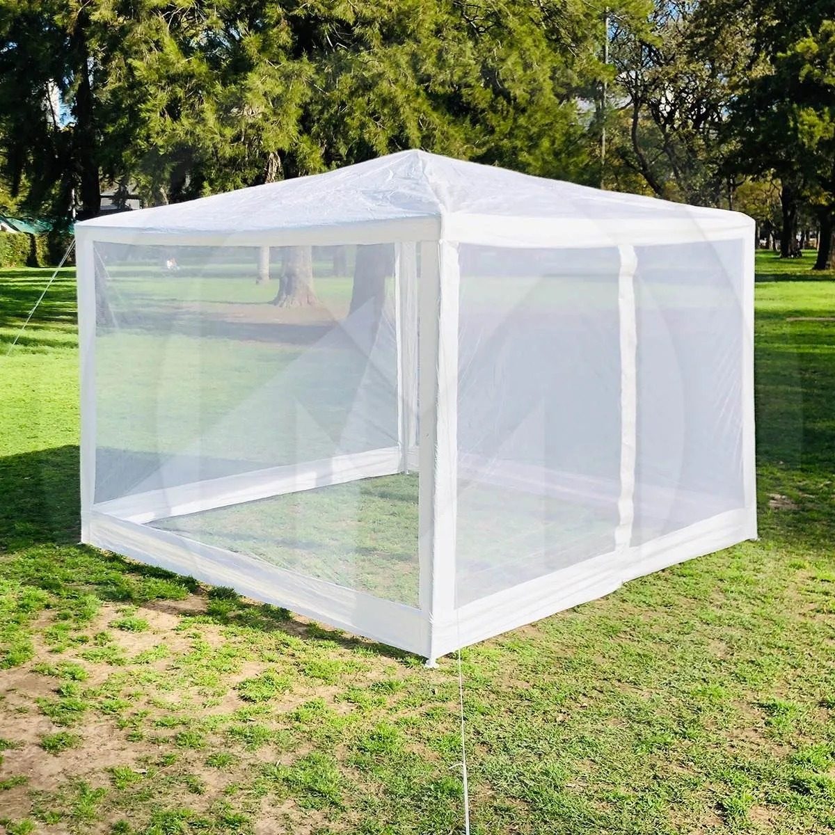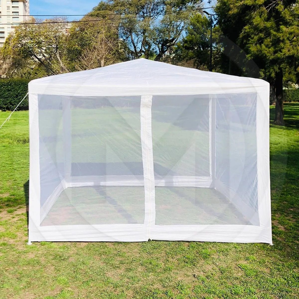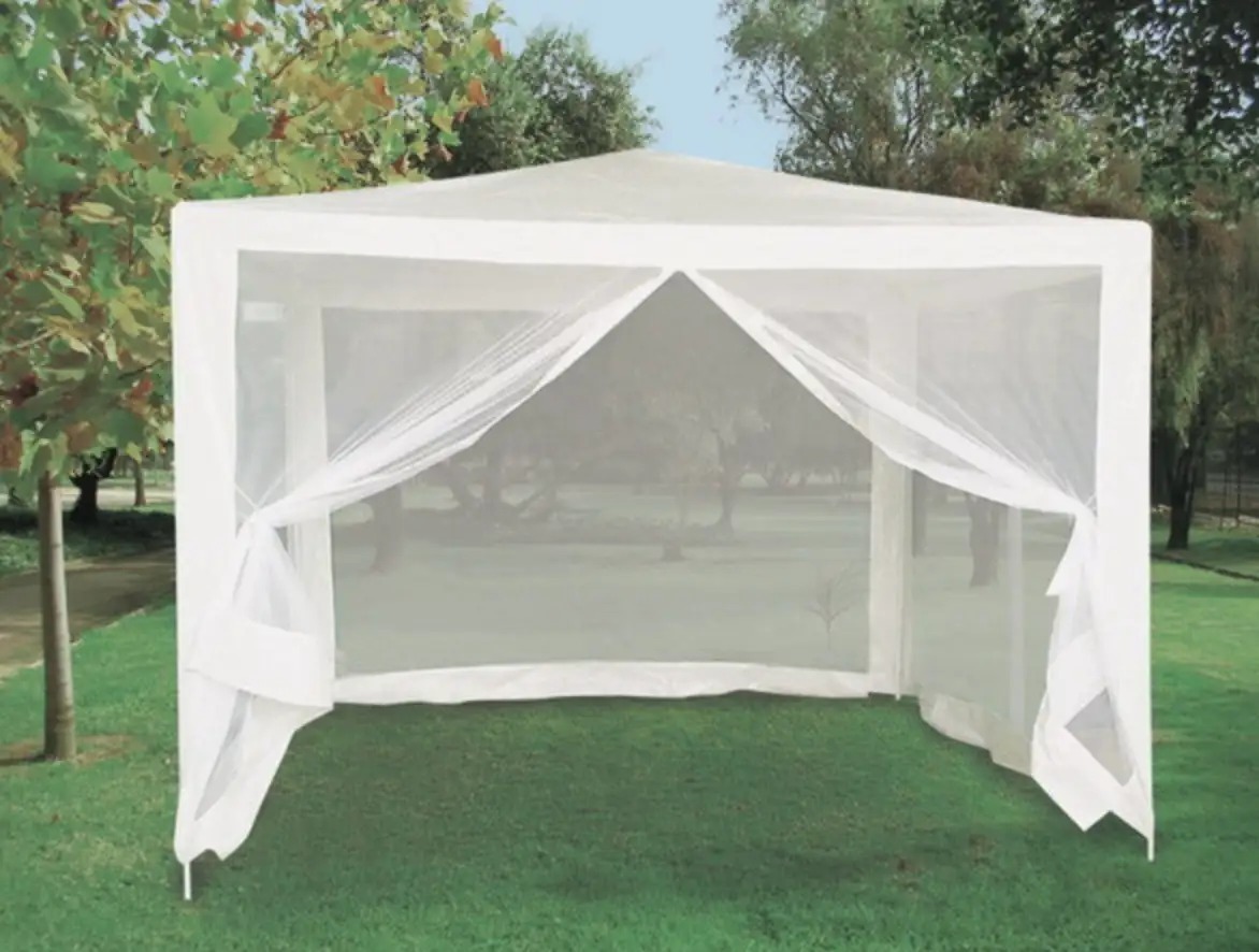Toldo comedor de poliéster con malla mosquitera en sus 4 lados.