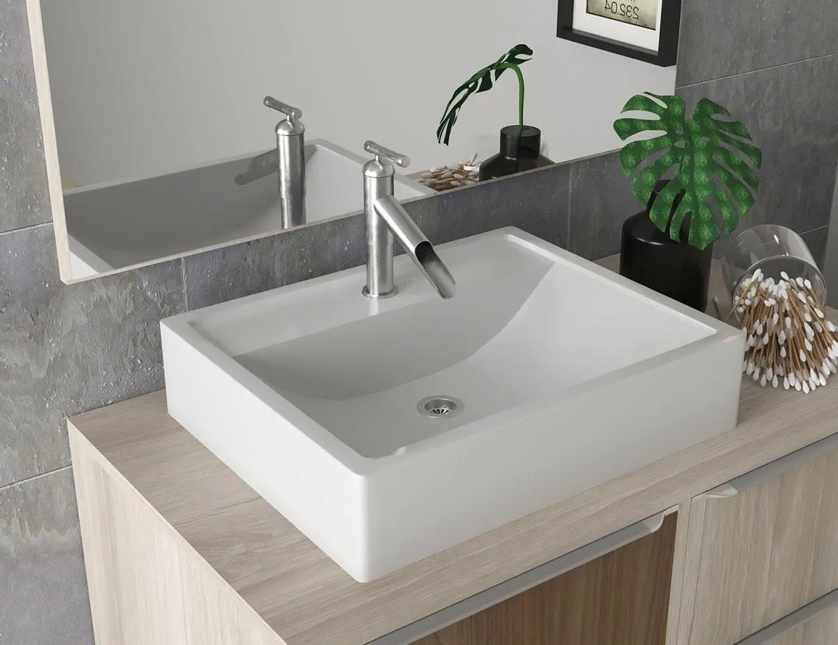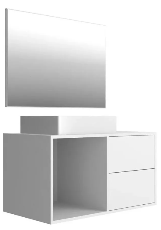 -*Fabricado en MDF de excelente calidad y agarraderas de aluminio, viene con un espejo y con tapa de resina de mármol con bacha.