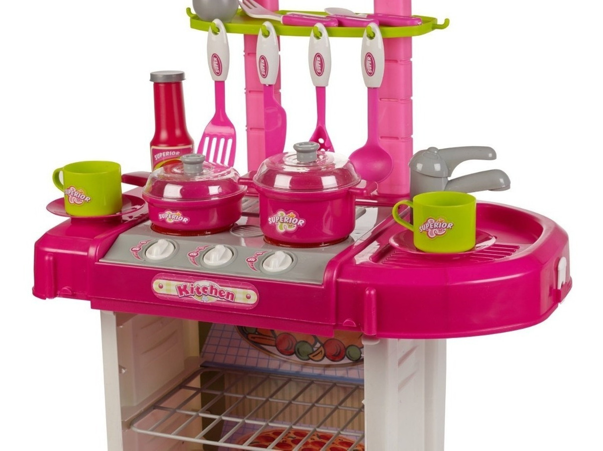 – Cocina para niños con luces y sonido real. (sonido a hervor y fritado, horno con simulación timer)