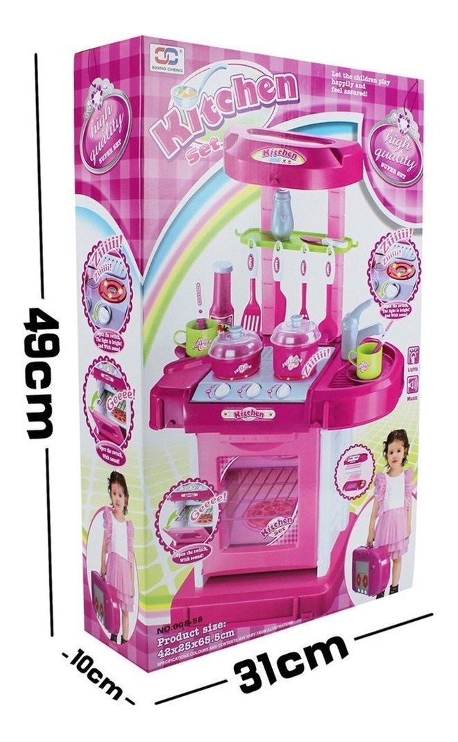 Este súper juego de cocina de lujo es todo lo que los niños necesitan para cocinar en su propio juego de cocina de juegos de imaginación. Contiene utensilios de cocina y otros accesorios de cocina, etc. Este juego de juegos hace que los niños se involucren en actividades lúdicas que son super divertidas. Es el mejor compañero de cocina para divertirse todo el día. Proporciona juegos de roles imaginativos y presenta a los niños las tareas diarias de la cocina doméstica. Está hecho de material de alta calidad y puede autoensamblarse en pasos sencillos siguiendo las ilustraciones del paquete. Tiene luz y sonido que entusiasma a los niños. Requiere 3 pilas AA para funcionar y es adecuado para niños de 3 años en adelante.
