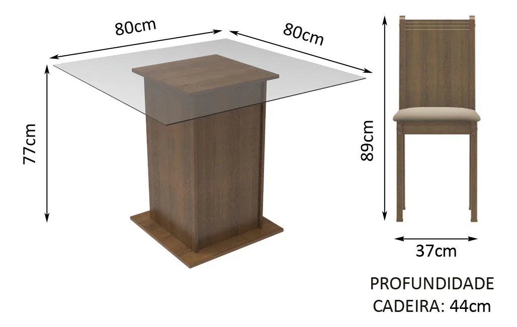 Las sillas, elaboradas en MDF/MDP, la mesa, también de MDP, se adapta a tus necesidades con su altura de 77 cm y un ancho de 80 cm. Con un diseño que combina elegancia y practicidad, este juego es perfecto para cualquier comedor.