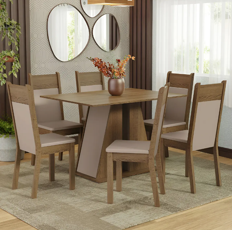 Transforma tu espacio con el Juego de Comedor Living de Muebles Web, modelo Beverly. Este conjunto incluye una mesa rectangular de 120 cm de largo y 90 cm de ancho, ideal para compartir momentos inolvidables con familiares y amigos. Las seis sillas, diseñadas con un estilo clásico, ofrecen comodidad y elegancia, con una altura de 98 cm y un diseño que se adapta a cualquier ambiente.