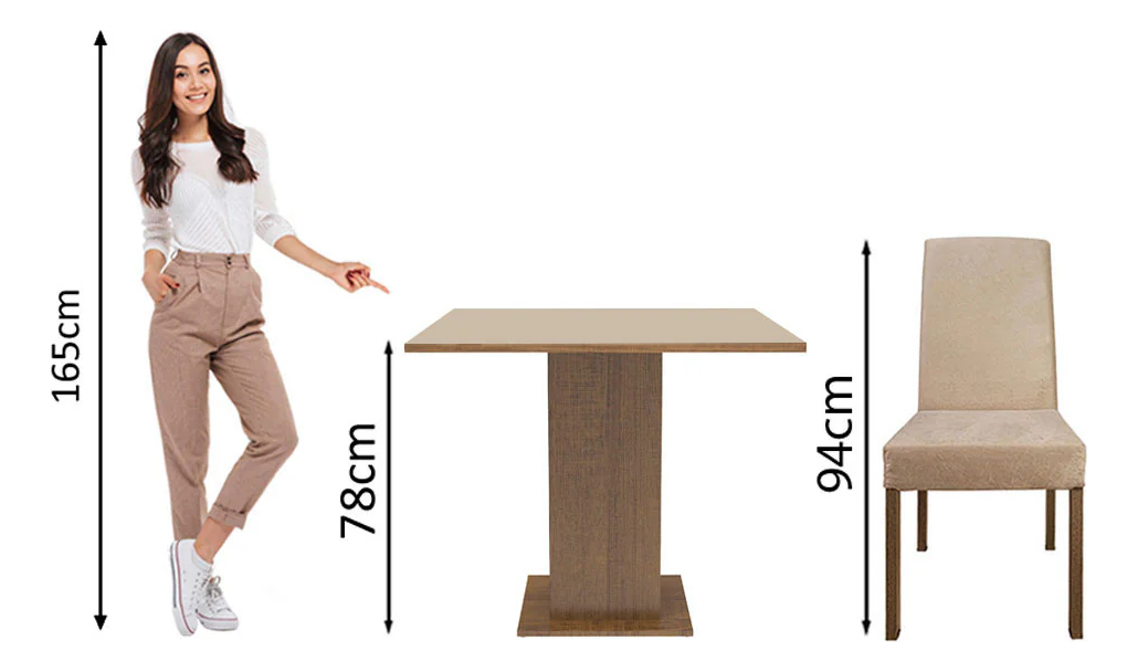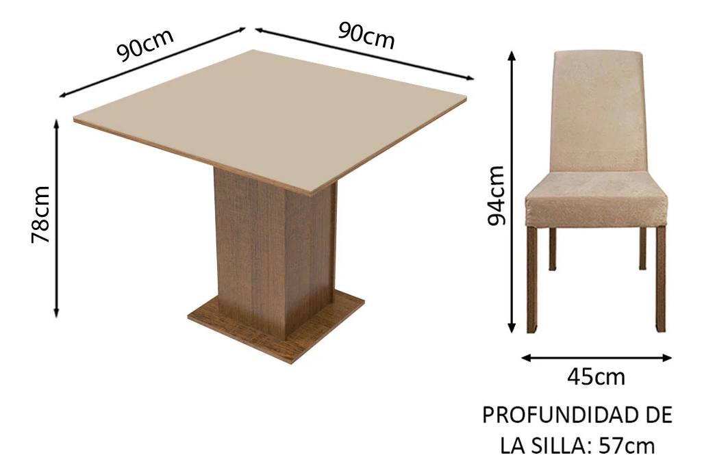Las sillas, elaboradas en MDF. Con una altura de 94 cm y un ancho de 45 cm, son perfectas para complementar la mesa y crear un ambiente acogedor. Este juego de comedor no solo es práctico, sino que también añade un toque contemporáneo a tu decoración.