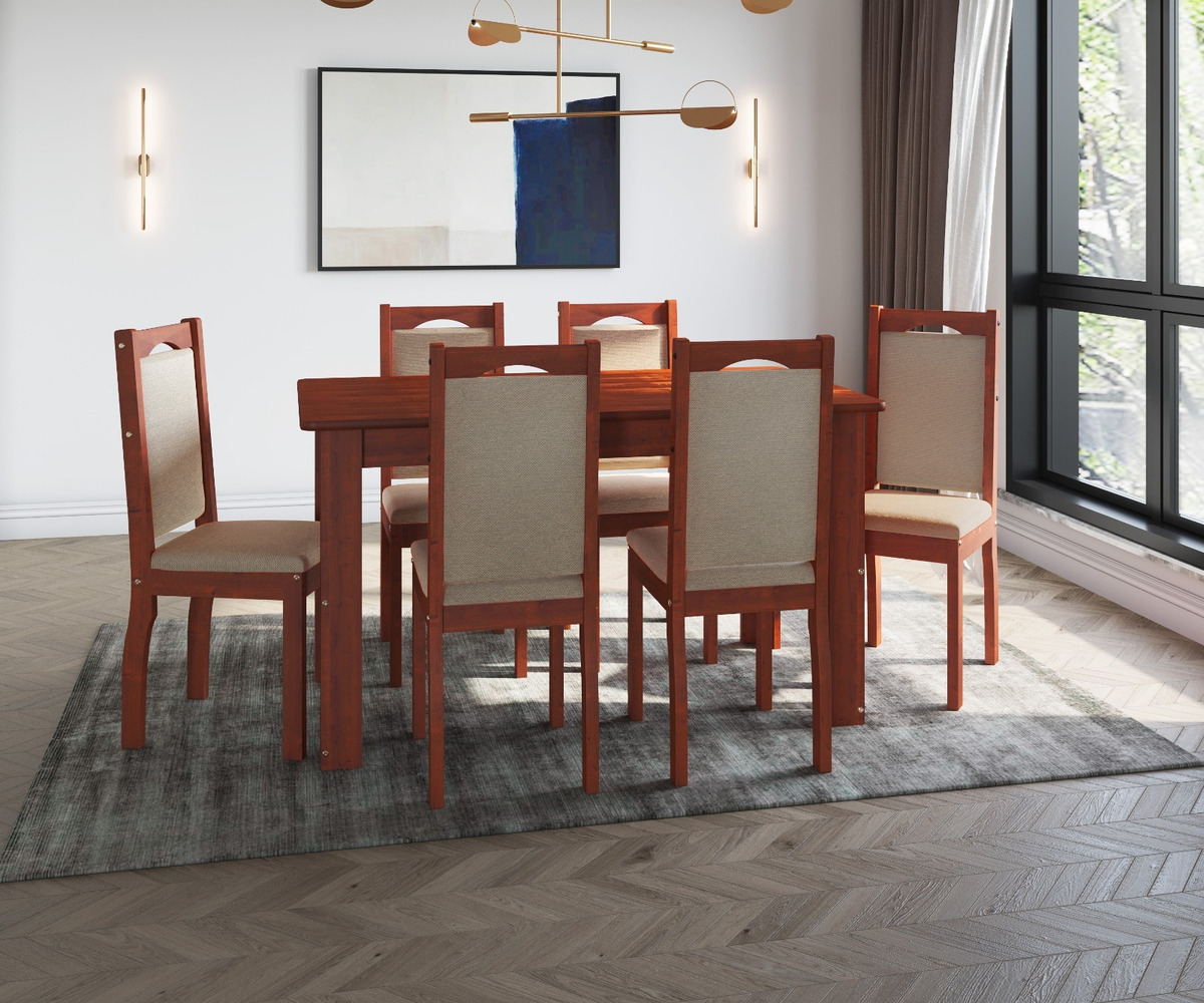 Juego de comedor Mesa Rectangular + 6 Sillas Tapizadas