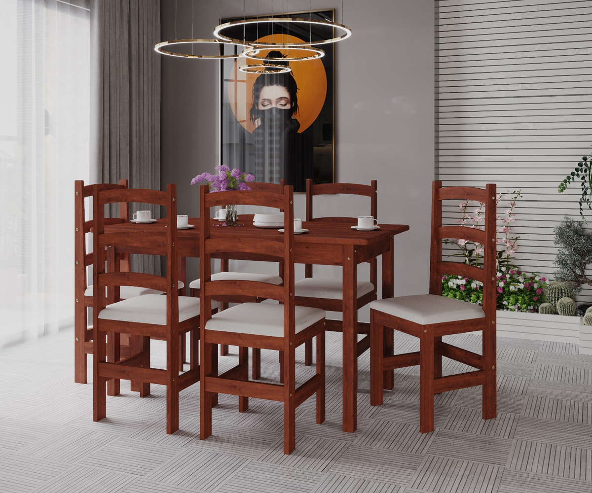 Juego de comedor Mesa Rectangular + 6 Sillas Tapizadas