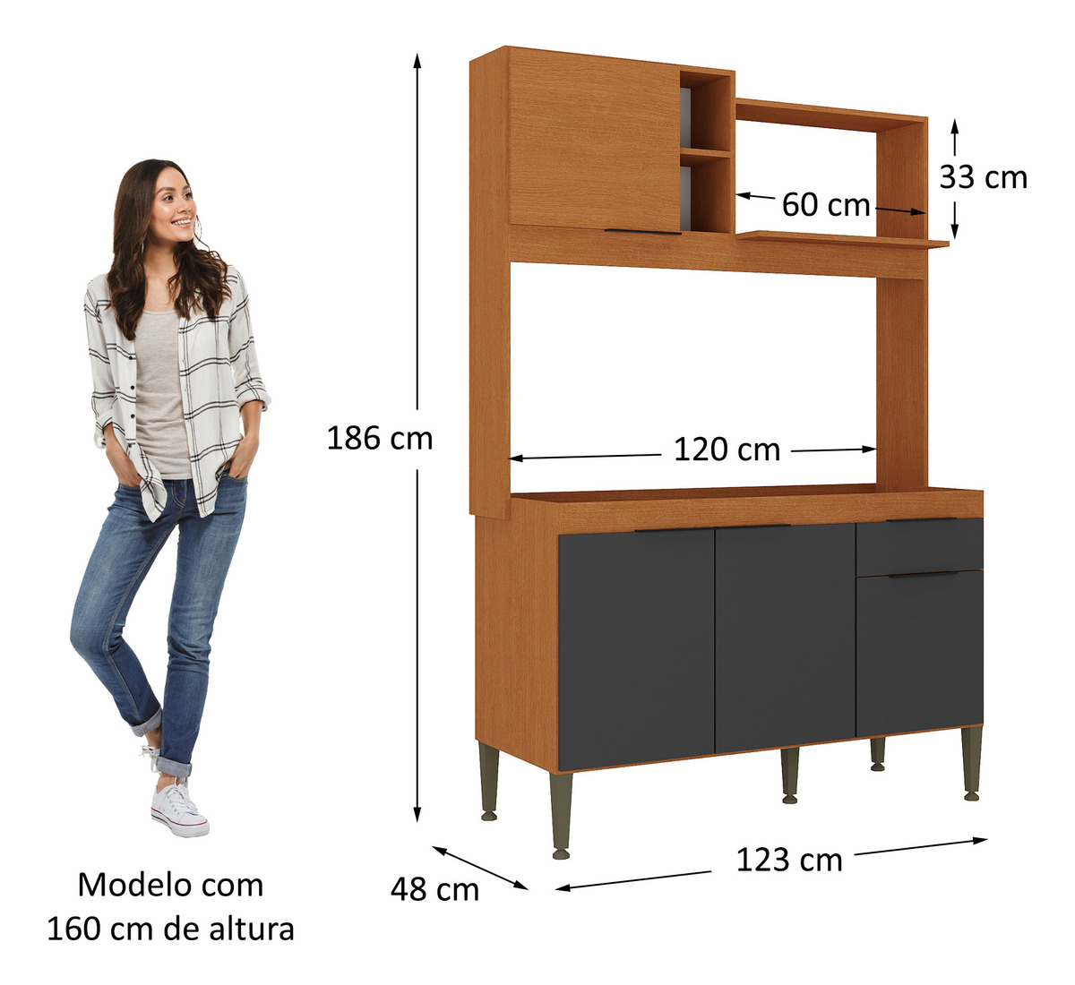 Kit Mueble Cocina Compacta Alacena Armario Bajo Mesada Aéreo – Manchester/Grafito