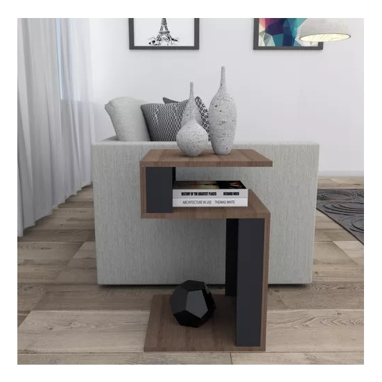 Mesa Auxiliar De Arrime Living Esquinera – Negro/Castaño