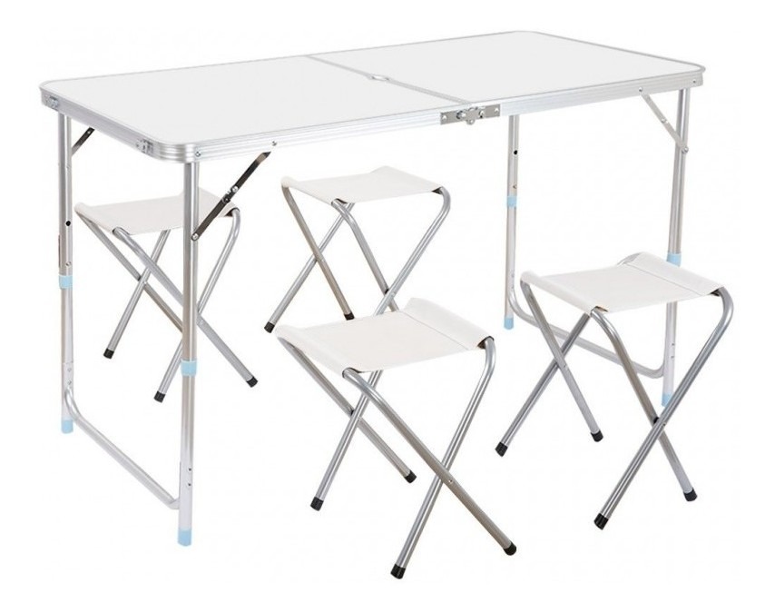 Juego de Camping Mesa con 4 Bancos Plegables de Aluminio