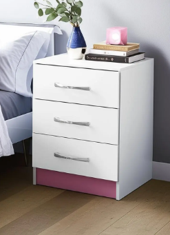 Mesa De Luz 3 Cajones – Gran Altura – Variados Colores – Rosa