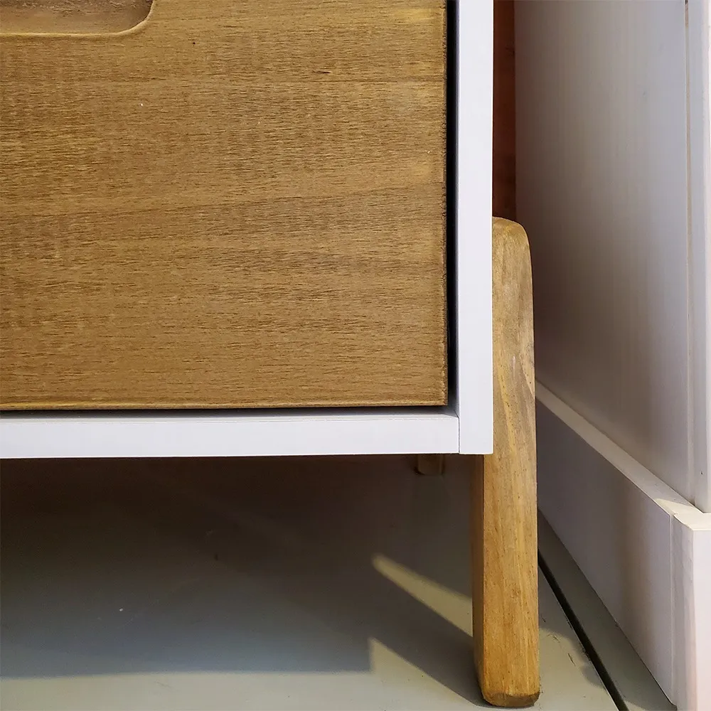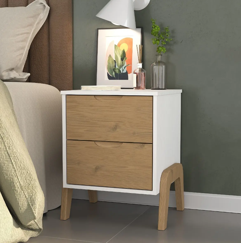 Mesa de luz con patas y 2 cajones.
