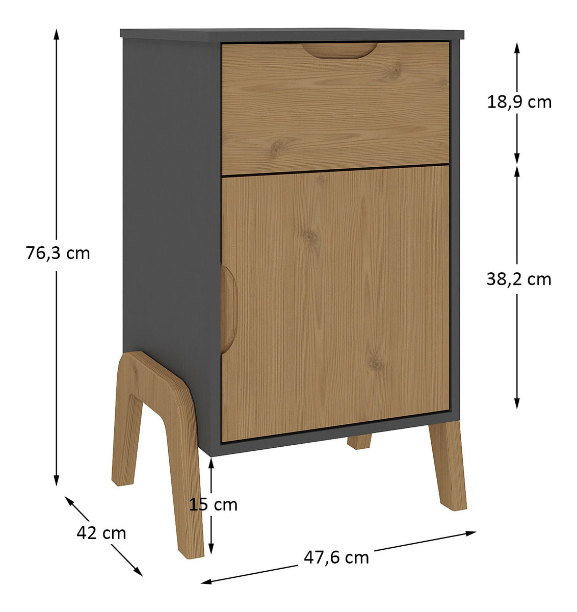 La Mesa De Luz Dormitorio 1 Cajón 1 Puerta Cabecera Sommier de la línea Veneza de Muebles Web es la solución perfecta para quienes buscan funcionalidad y estilo en su dormitorio. Con unas dimensiones de 76,3 cm de altura, 47,6 cm de ancho y 42 cm de profundidad, se adapta a cualquier espacio, ofreciendo un diseño elegante y práctico.