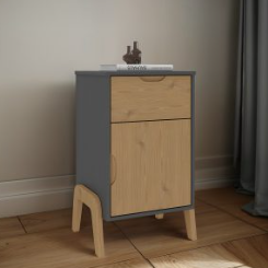 Fabricada en MDP y madera de pino, esta mesa de luz provee estética, asegurando que se integre perfectamente con la decoración de tu habitación. Su diseño incluye un cajón y una puerta, proporcionando espacio de almacenamiento para tus objetos personales, manteniendo tu entorno ordenado y accesible.