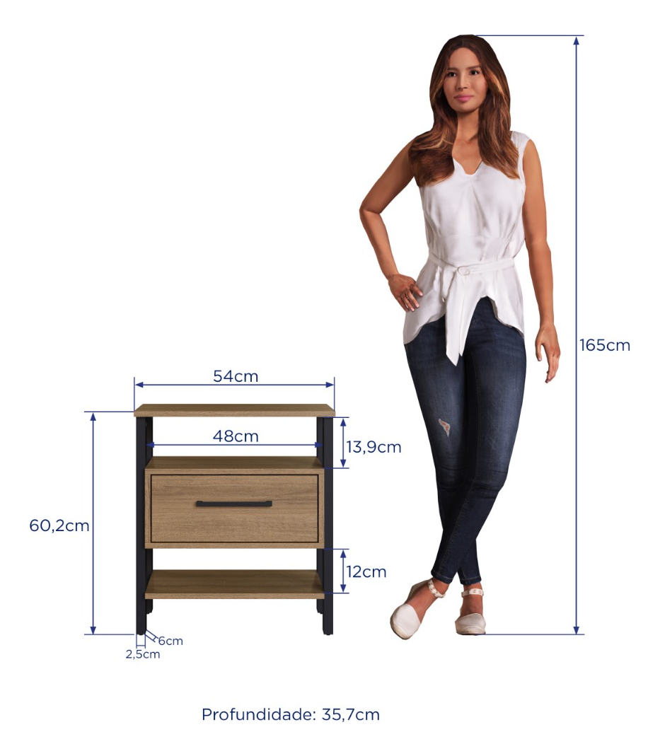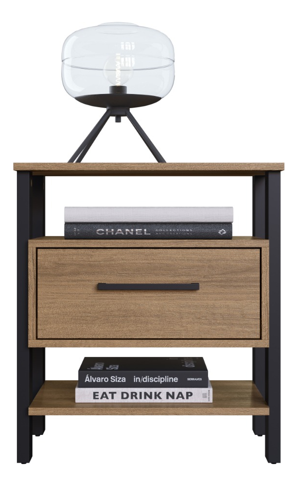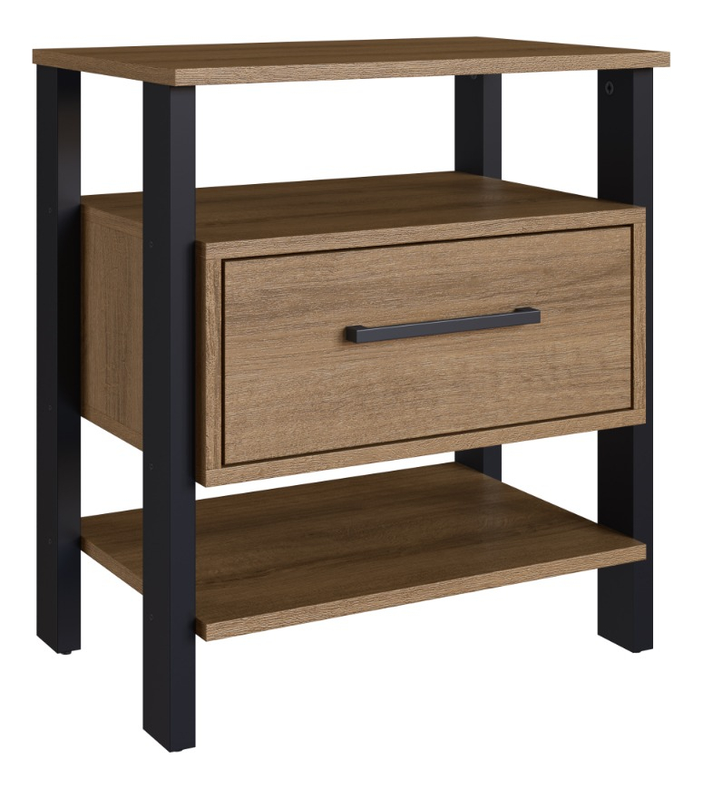 Mesa de luz 1 cajón y 2 espacios.