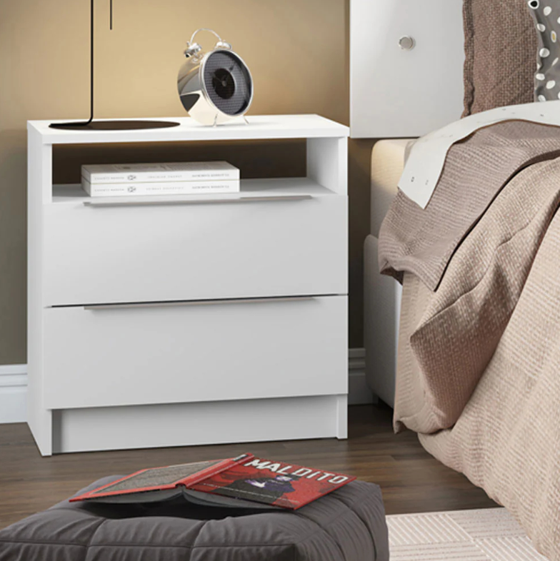 Mesa De Luz Dormitorio Auxiliar Cajones – – Blanco
