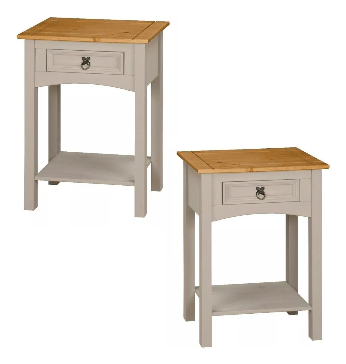 Mesa De Luz Sommier X2 Auxiliar Linea Mexicana Madera Maciza – Blanco/Rústico