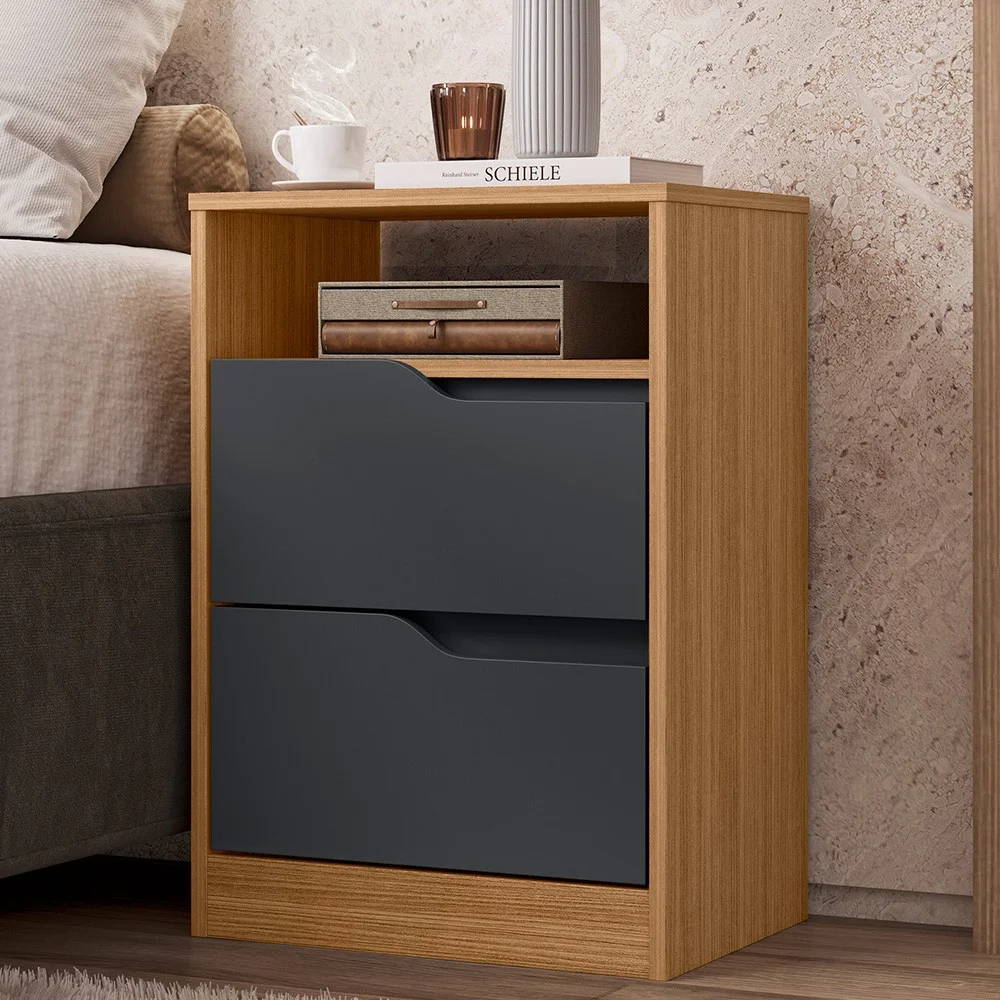 Mesa De Noche 2 Cajones Estante Mesita De Luz Dormitorio