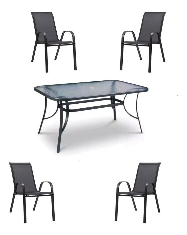 Mesa de Vidrio Rectangular + 4 sillas Textilina – Juego de jardín