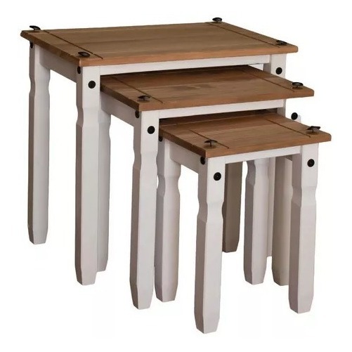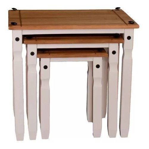 Mesa Ratona Nido Set De 3 – Madera Maciza Linea Mexicana – Blanco/Rústico