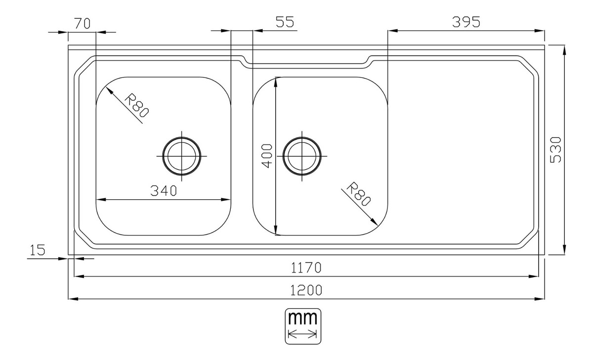 Mesada Pileta Doble Izquierda Acero Inox Hormigon Alivianado