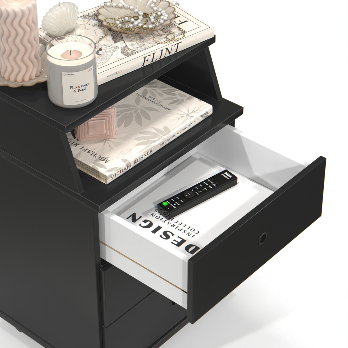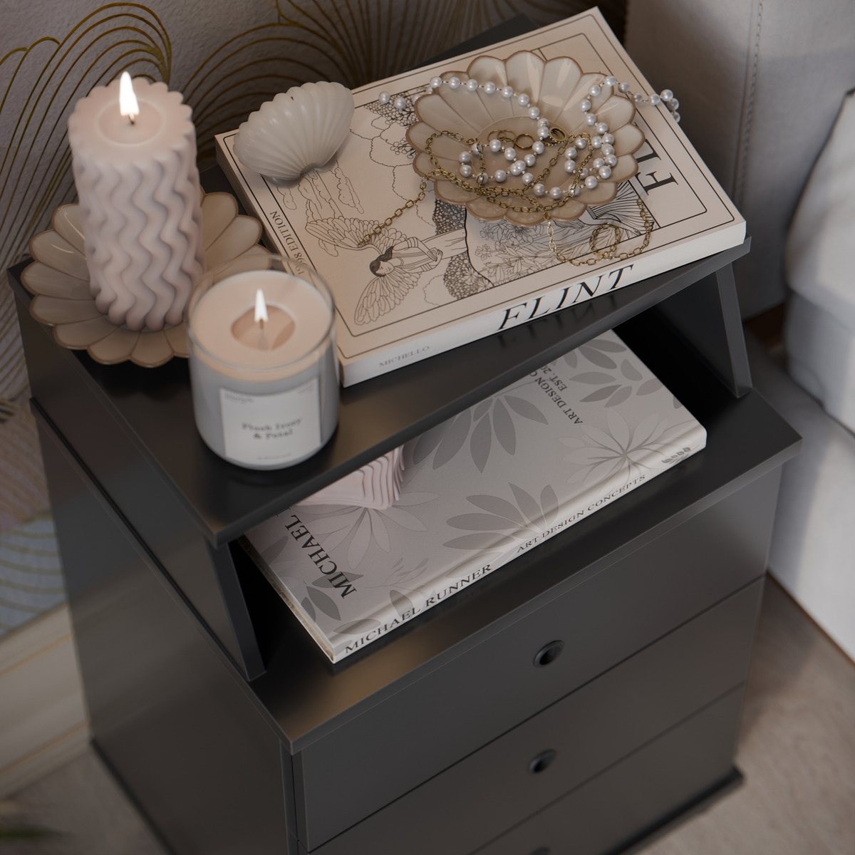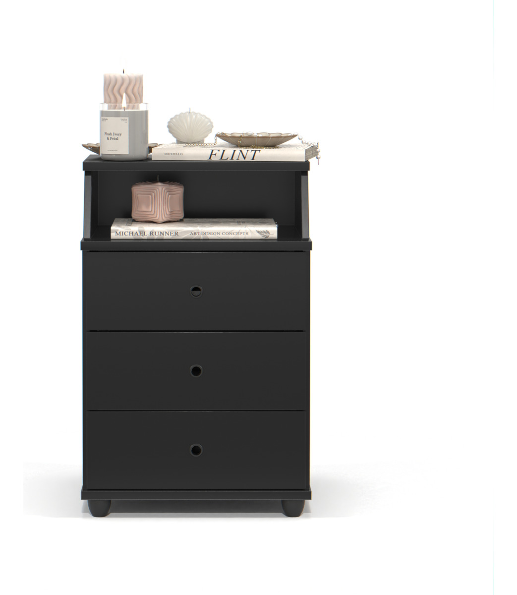 Mesita De Noche 3 Cajones Con Espacio Mesa De Luz Somier – Brillante, Negro