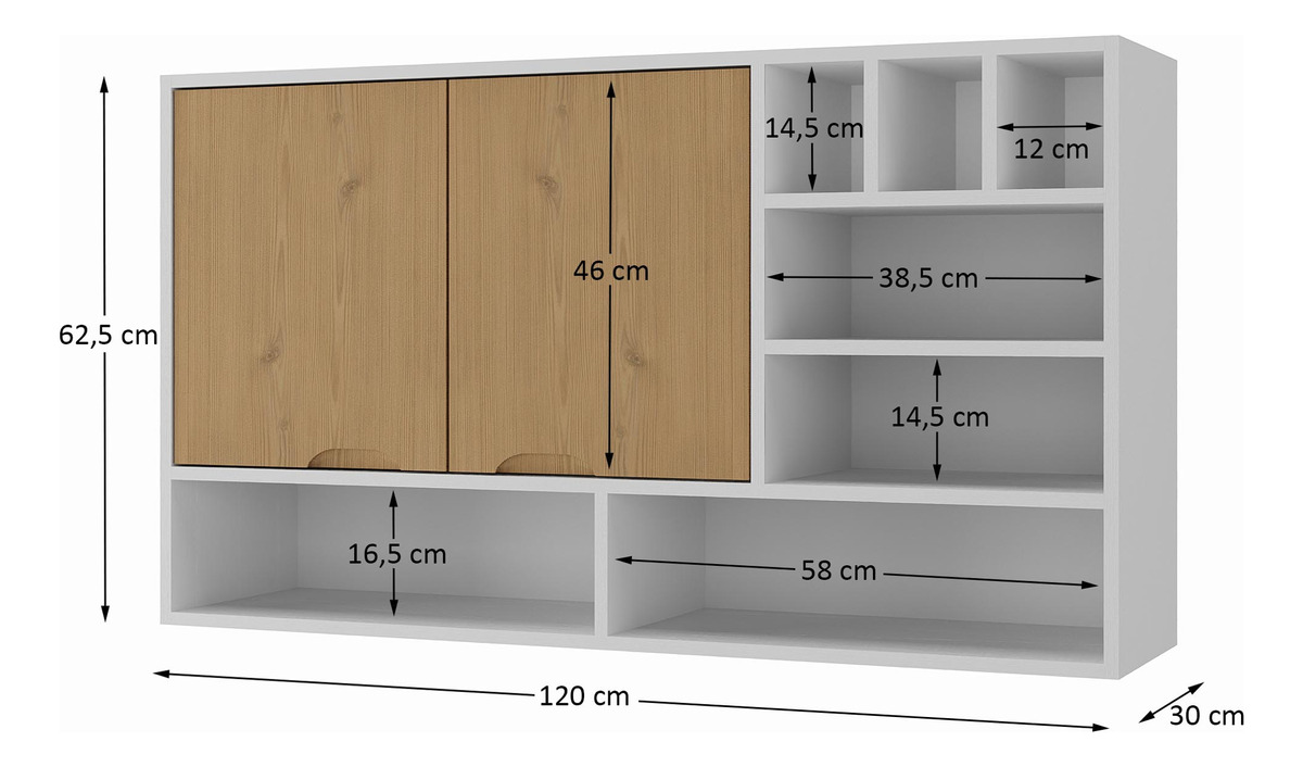 Mueble Aereo De Cocina Alacena Superior 2 Puertas Estantes – Blanco/Pino