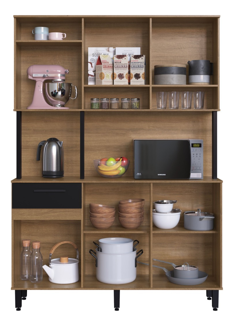 Mueble Aereo De Cocina Alacena Superior 2 Puertas Estantes – Grafite/Pino